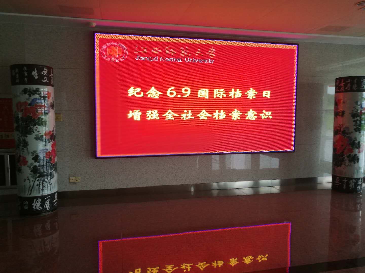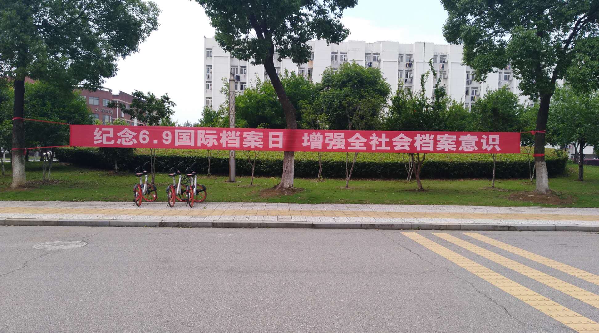 6月9日是国际档案日,为了配合国家档案局和江西省档案局关于开展国际档案日宣传活动的工作,我馆开展了一系列宣传活动,一是在学校行政楼电子显示屏上滚动播出宣传口号;二是在学校主干道悬挂多条纪念国际档案日的标语横幅;三是在各单位主要负责人微信群里介绍学校档案馆藏情况,增进大家对学校档案工作的了解,进一步增强师生的档案意识。